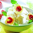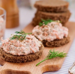 Stepemo sladko smetano in jo vmešamo v ohlajeno lososovo peno. Solimo in popramo. Okrasimo s koprom in postrežemo.
