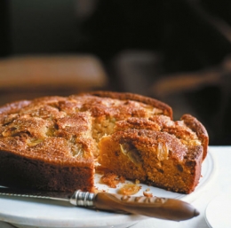 Pečico segrejemo na 180 °C. Model za torte premera 23 cm namažemo z oljčnim oljem, vanj vsujemo žlico moke in jo stresemo po modlu, tako da enakomerno prekrije dno in obod, odvečno moko stresemo ven. V skledi stepemo sladkor muskovado in maslo, da nastane kremasta masa. Drugo za drugim vmešamo jajca, nato narahlo vmešamo še pomarančno in limonovo lupinico. Skupaj zmešamo ohlajeno vino in oljčno olje, nato malo mešanice prilijemo masi za kolač. Pomešamo, nato narahlo vmešamo tretjino moke in pecilni prašek. Izmenično dodajamo tekočino in moko, dokler ni vse zmešano in nastane gladko testo.