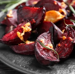 V segreti pečici pečemo 20 minut, nato jo premešamo, potresemo z nasekljanim česnom in rožmarinom in vrnemo v pečico še za 10 minut, dokler se pesa popolnoma ne zmehča.