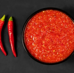5 rdečih čilijev (lahko prilagodite glede na stopnjo začinjenosti) 3 stroke česna, nasekljan 1 velika paradižnik, nasekljan 1/2 čebule, nasekljane 1/2 skodelice kisa (npr. beli vinski kis ali jabolčni kis) 1/2 skodelice vode 1 žlička soli (ali po okusu) 1 žlička sladkorja (po želji, za uravnoteženje kislosti) 1 žlica olivnega olja