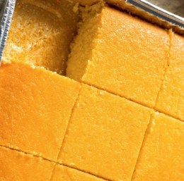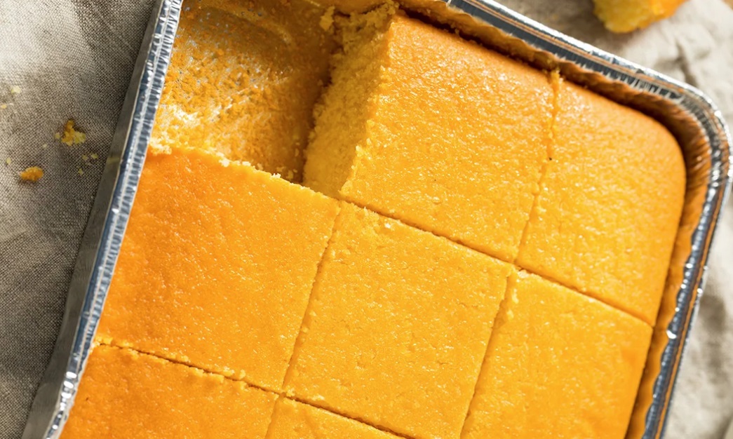 200 g koruzne moke 100 g bele pšenične moke 2 jajci 250 ml naravnega jogurta 100 ml rastlinskega olja (sončnično ali olivno) 1 čajna žlička soli 1 vrečka pecilnega praška (približno 10 g) Opcijsko: 100 g feta sira ali 100 g špinače za dodatek okusa Postopek