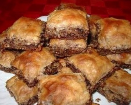 Ko je pita sestavljena, jo previdno z nožem narežemo na kocke želene velikosti in pečemo v ogreti pečici 20-25 minut na 180 C.