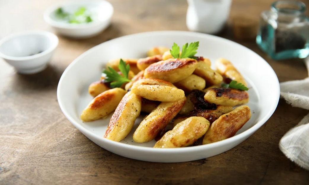 Iz testa oblikujemo svaljke želene velikosti. Pripravimo vrelo slano vodo in dodamo nekaj kapljic olja, da se svaljki med kuhanjem ne sprimejo.