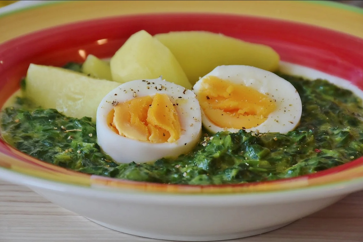 KUHINJA.COM | Kremna špinača s trdo kuhanim jajcem in kuhanim krompirjem ...