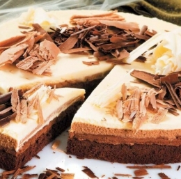 Naša najbolj čokoladna torta je sestavljena iz 3 različnih vrst kremastega moussa.