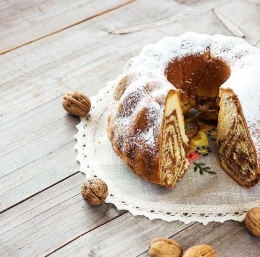 Po peki pustimo, da se pekač s potico nekoliko ohladi, nato pa potico nežno pretresemo na leseno podlago. Svetujemo vam, da pred tem pri robovih nežno razmaknete testo od pekača, da bomo potico v enem kosu prestavili na ustrezno mesto.