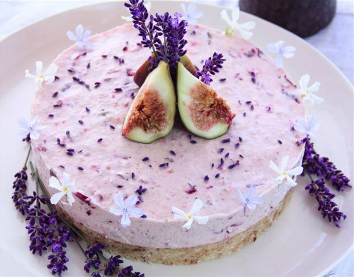 - 1 in 1/2 skodelice indijskih oreščkov, namočenih čez noč - 1 in 1/2 skodelice kokosovega mesa (2 kokosa) - 3/4 skodelice mleka iz oreščkov ali drugega rastlinskega mleka - 1/2 skodelice medu ali drugega tekočega sladila - 1/2 skodelice kokosovega olja - sok 1 limone (1/4 skodelice) - 1 žlica posušene sivke - 3 stroki vanilje - 2 ščepca himalajske soli - 2 žlici otrobov indijskega trpotca - dodatna voda za mešanje po potrebi - 1 skodelica češenj - 3 velike zrele fige