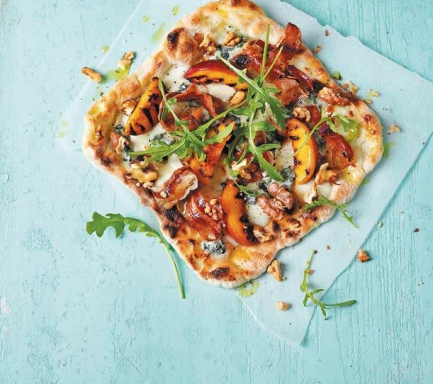 KUHINJA.COM | Pica z gorgonzolo, panceto in popečenimi breskvami ...