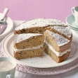 Naredimo biskvit. Zmehčano maslo in sladkor damo v veliko skledo in ju približno 5 minut stepamo z električnim mešalnikom, da dobimo svetlo penasto maso. Postopoma dodajamo jajca in neprestano mešamo, da je vsako jajce popolnoma vmešano, preden dodamo naslednjega. V drugi skledi zmešamo moko, koruzni škrob, začimbe in pecilni prašek. Suhe sestavine postopoma v treh delih primešamo mokrim. Vsakič prilijemo 1 dl mleka in premešamo. Maso razdelimo v tri pekače in zgladimo površino. Biskvite pečemo 25 do 30 minut ali tako dolgo, da je zobotrebec, ki ga zapičimo v sredino biskvita, čist, ko ga izvlečemo. Pustimo, da se biskviti 10 minut hladijo v pekačih, nato jih zvrnemo na rešetko, odstranimo papir za peko in pustimo, da se popolnoma ohladijo.