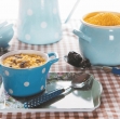 1 l mleka 300 g prosene kaše 300 g suhih sliv brez koščic 2 jabolki (pribl. 400 g) 250 g prepasirane skute 200 g sladkorja 150 g masla 4 rumenjaki 4 beljaki vaniljev sladkor mleti cimet mleti kardamom limonova lupinica maščoba in ostra moka za pekač sladkor v prahu za okras lističi mete za okras