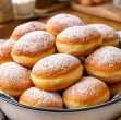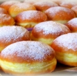 V še tople krofe nabrizgamo marelično marmelado, jih potresemo s sladkorjem v prahu in ponudimo.