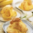 Maso porazdelimo na koščke banan v modelčkih in pečemo v prej ogreti pečici pri 210 °C približno 6 do 8 minut. Desert vzamemo iz pečice, potresemo s sladkorjem v prahu in takoj ponudimo.