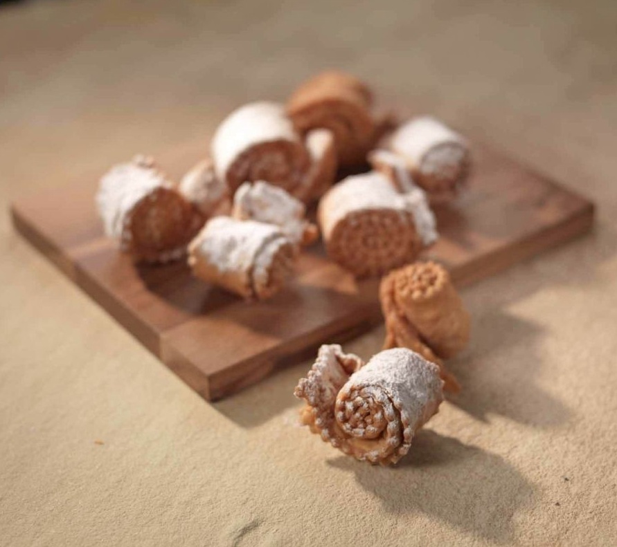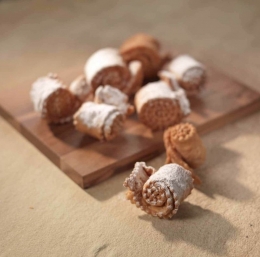 Iz navedenih sestavin zgnetemo mehko, voljno testo, ki naj počiva pol ure. Potem testo čim tanjše razvaljamo in s koleščkom razrežemo na približno 20 cm dolge in do 5 cm široke trakove. V sredini jih preganemo in spiralno zvijemo.