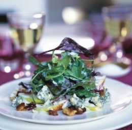 KUHINJA.COM | Solata s hruško, datlji in orehi ter prelivom iz sira z modro plesnijo ...