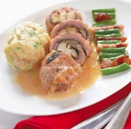 Svinjske zrezke tanko potolčemo, solimo in popramo, obložimo z rezinami prekajene gnjati in špinačnimi listi, namažemo s pašteto in na koncu obložimo še s trakci piščančjih prsi. Obložene zrezke tesno zvijemo. Vsak zvitek obložimo z dvema žajbljevima lističema, povežemo s kuhinjsko vrvico ter začinimo s soljo in poprom.