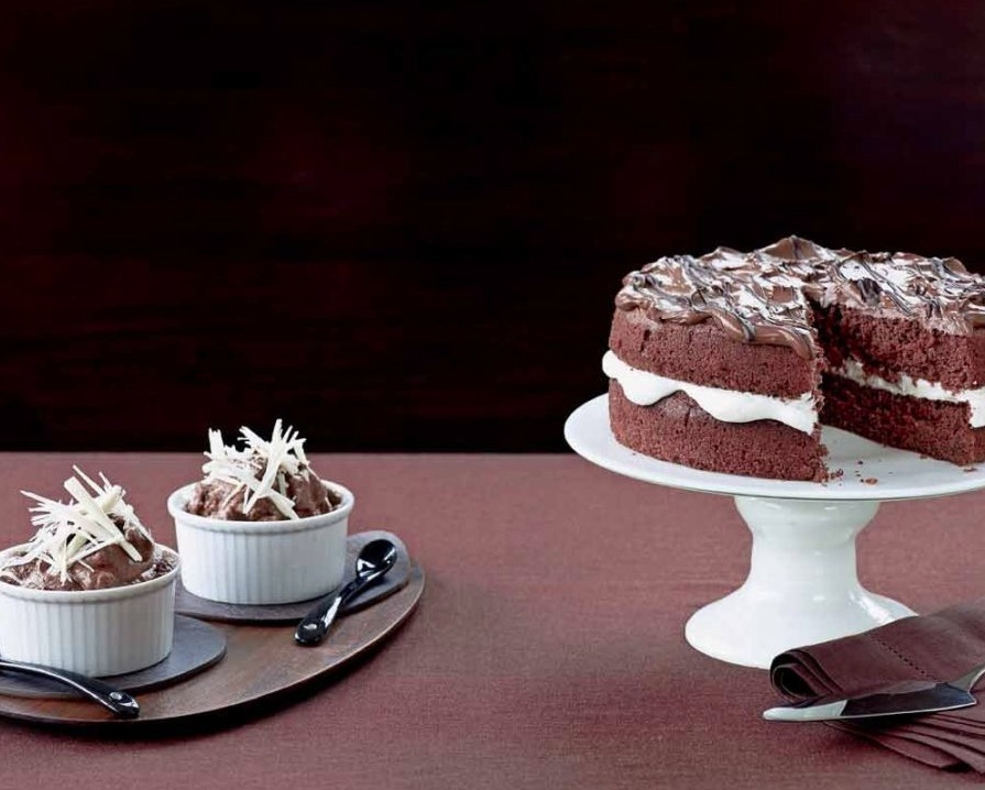Temno čokolado raztopimo nad soparo in pustimo, da se rahlo ohladi. Beljak čvrsto stepemo, nato med stepanjem dodamo še sladkor in kardamom. Vmešamo stopljeno temno čokolado in še nasekljano belo čokolado.