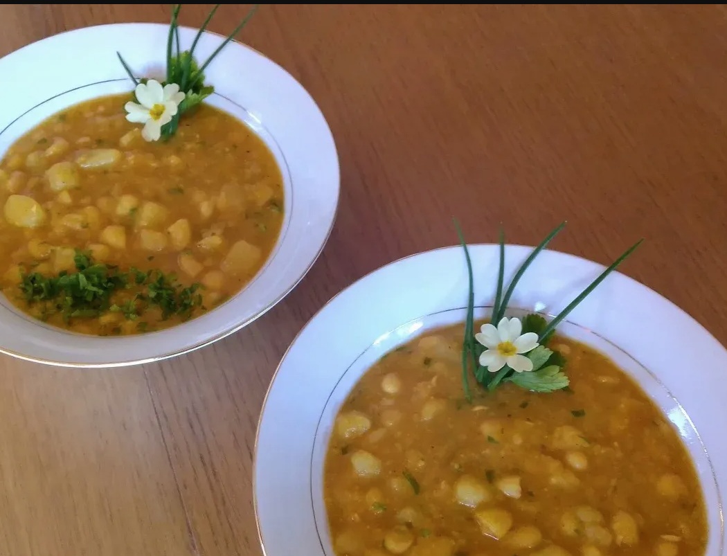 Naslednji dan vodo odlijemo, dodamo enako količino olupljenega in na manjše koščke narezanega starega krompirja ter olupljeno in na tanke rezine narezano rumeno kolerabo. Zalijemo s približno 2 litroma vode.