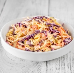 | Coleslaw je ameriški izraz za solato iz zelja in korenja, ki se običajno pripravi s kremastim prelivom na osnovi majoneze.