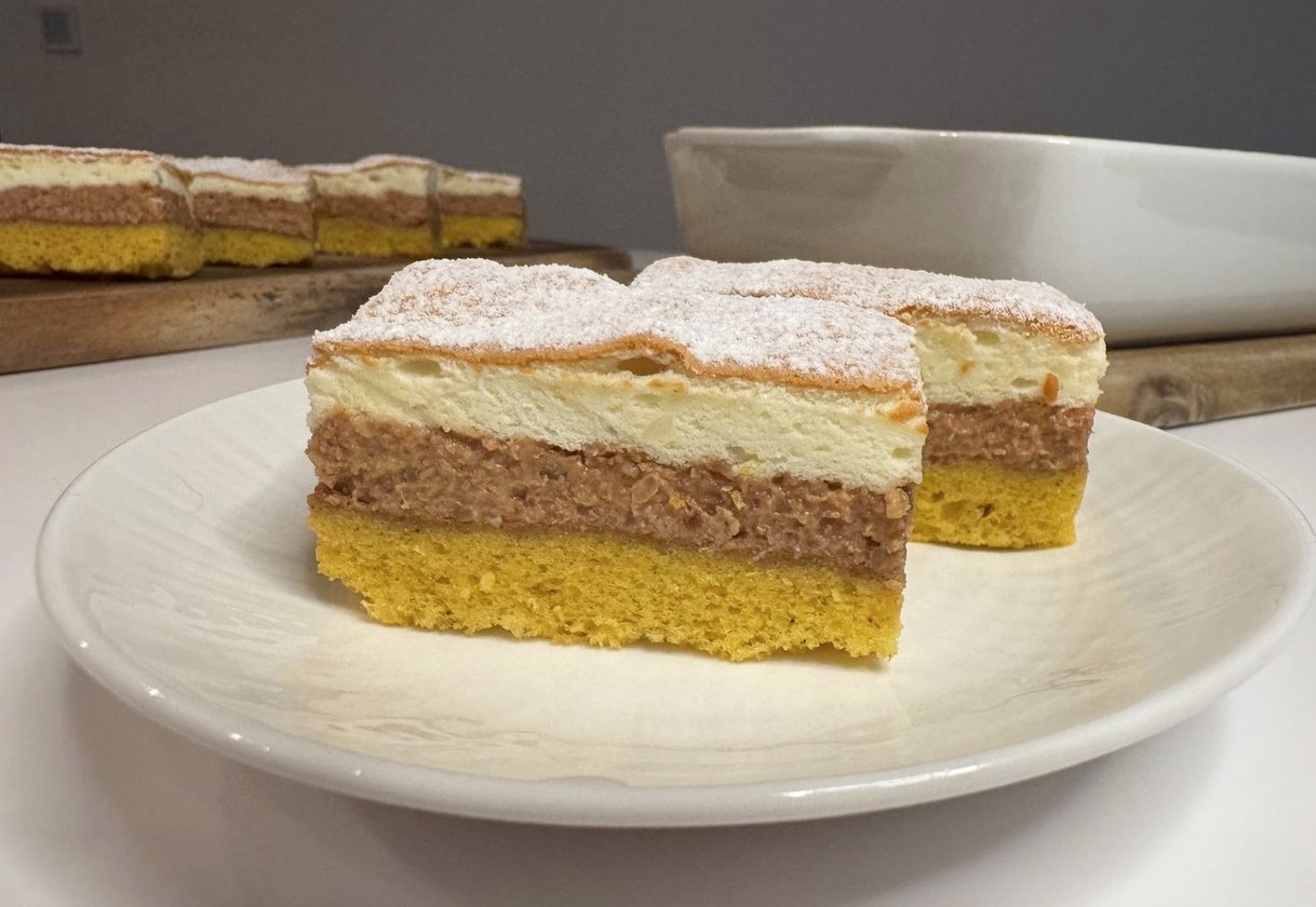 Dve okusni plasti biskvita, med njima pa bogat nadev iz orehov in marmelade. Odlično pecivo, ki ga boste pripravili z malo truda, z veseljem pa ga boste postavili tudi na praznično obloženo mizo.
