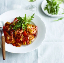 V ponvi segrejemo dve žlici olja in na njem popražimo kozice.