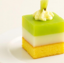 Če iščete sladico, ki je hkrati sočna, lahka in vizualno privlačna, so kocke ‘Esmeralda’ popolna izbira. Mehka biskvitna osnova, svilnata bela krema in osvežujoč kivi preliv ustvarijo sladico, ki navduši z videzom in okusom.