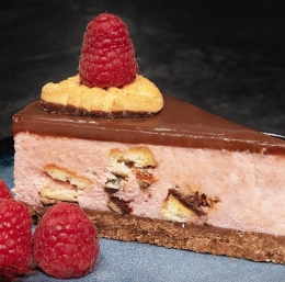 Vsi poznamo priljubljene piškote Domaćica, ki v našem otroštvu nikoli niso manjkali v kuhinjskih omarah. Slastni, hrustljavi z čokoladnim oblivom. Velikokrat z njimi pripravljamo tudi različne sladice – danes torto z malinami.