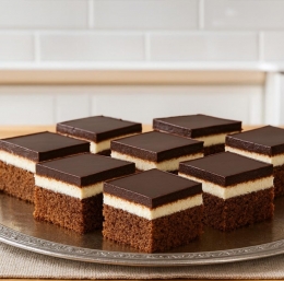 To je ena tistih sladic, ki očara že na prvi pogled – temen, sočen biskvit, nežna plast s kislo smetano in kokosom ter čokoladni preliv, ki vse poveže v popolno harmonijo okusov. Preprosto za pripravo, a vedno deluje razkošno in praznično.