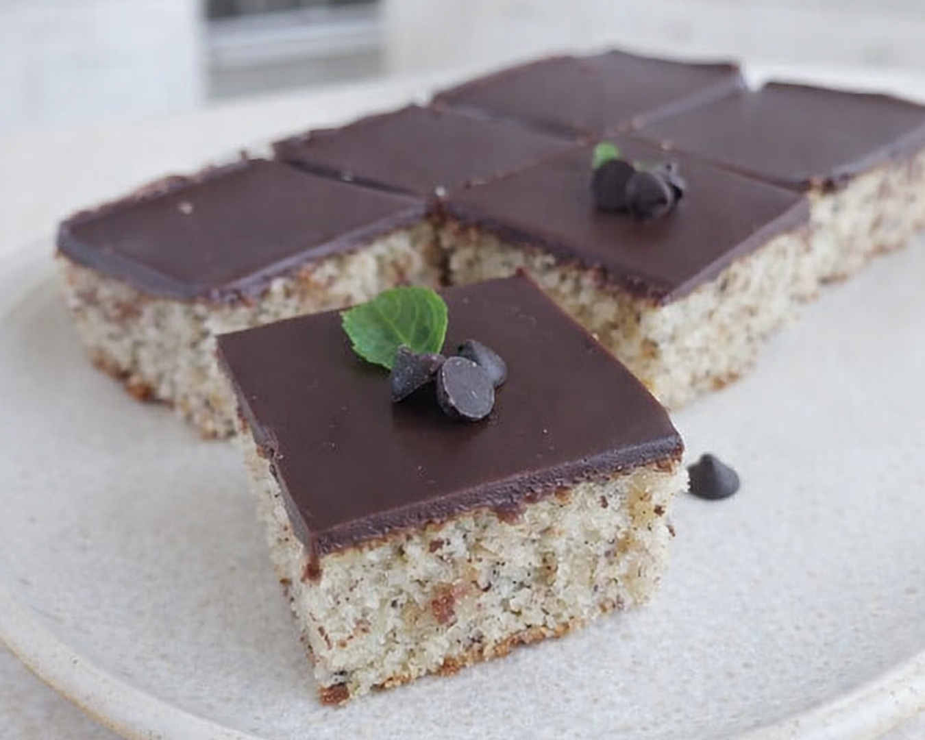 Lešniki poudarijo čokoladni okus in hkrati poskrbijo, da pecivo ostane mehko tudi več dni – zato je to sladica, ki je naslednji dan pogosto še boljša kot sveža.