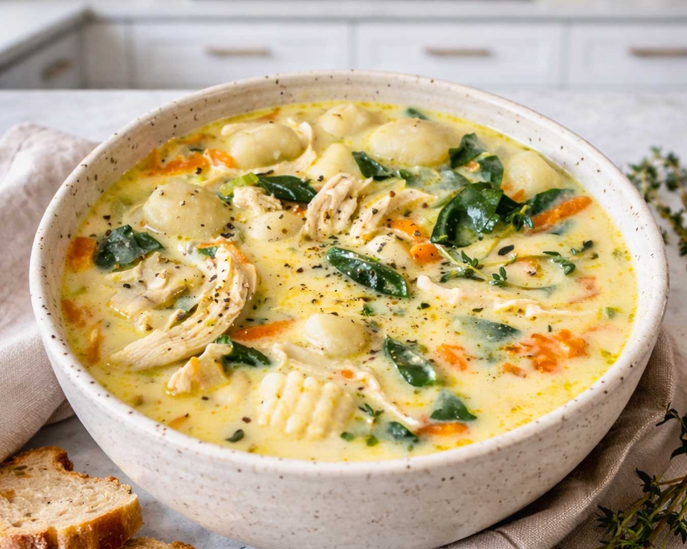 | Če iščete hitro, kremno in nasitno juho, ki je primerna tako za kosilo kot večerjo, je ta piščančja juha z njoki prava izbira. Navdihnjena je z legendarno juho iz ameriških restavracij Olive Garden, a pripravljena doma, iz preprostih sestavin in brez zapletov.