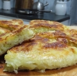 500 g krompirja 1 glavica rdeče čebule 5 žlic moke 200 ml mleka 50 ml olja 2 jajci 2 čajni žlički soli 1 čajna žlička popra