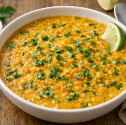Rdeča leča je najhitrejša pot do enolončnice, ki res nasiti. Curry da toplino, kokos naredi kremasto, limeta pa poskrbi, da jed ni težka.