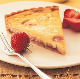 | Ta sladica je prijazna do zdravja, saj nadev ne vsebuje sladkorja. Sladkost ji daje hrustl podlaga iz sladkega krhkega testa obložena s plastjo jagod in debelimi koluti banane ter prekrita z lahko zmesjo limone in skute. Preizkusite!