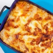 Pekač namažite z oljem, na dno položite liste lazanj, prelijte jih z malo omake, potem pa dodajte tretjino sirnega nadeva.