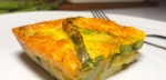 Po vrhu najprej naložimo rezine krompirja, nato še šparglje, na koncu pa potresemo s preostankom čedarja. Pekač namestimo na zgornjo rešetko, tik pod žar in zloženko pečemo 5 minut, oziroma dokler se vrhnja plast lepo ne zapeče. Pripravljeno jed ponudimo s skledo solate.