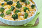 Pražimo, dokler čebula ne postekleni. Glavo brokolija razdelimo na cvetke in jih blanširamo v slanem kropu, dve ali tri minute bo dovolj, ter odcedimo. Namastimo pekač in vanj stresemo testenine.