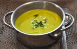 Po dobrih petih minutah odstavimo. Juho pretlačimo s paličnim mešalnikom. Začinimo jo s soljo in poprom, vmešamo košček masla in dve žlici kisle smetane ter postrežemo z opečenim kruhom.