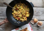 Umešana jajca z bučkami in papriko