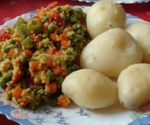 6 srednje velikih krompirjev 200g zmrznjena zelen (grah, korenček) 2 rdeči papriki 1 lonček kuskusa