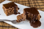 Ko je biskvit pečen, ga prelijemo s polovico čokoladne omake.