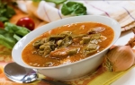 3 Vse skupaj prelijemo z jušno osnovo in dodamo fižol. Začinimo z vsemi začimbami in kuhamo približno pol ure.