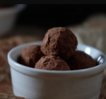 Z dvema žličkama iz mase oblikujemo manjše kroglice. Povaljamo jih v kakavu, zložimo na krožnik in damo v hladilnik, da se učvrstijo.