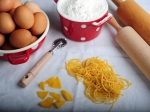 Dodajamo po kapljicah, saj se lahko hitro zgodi, da je premokro. Ko je testo pripravljeno, ga z valjarjem ali s strojčkom za testenine razvaljamo na 10–15 cm široke trakove. Debelina je odvisna od naših želja. Jaz imam raje tanjše rezance, nekateri imajo raje debelejše.