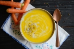 - 500 g korenčka - 2 litra jušne osnove - žlica kokosove maščobe - čebula - malo soli - 3 stroki česna - košček ingverjeve korenine - sok pol limone - 200 ml kokosovega mleka