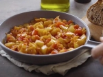 Ko jih vzamemo iz vode, jih previdno olupimo in razrežemo na manjše koščke. Papriko očistimo in jo ravno tako narežemo na manjše kocke.