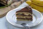 Preden se lotimo sestavljanja torte pripravimo še banane za nadev. Olupimo tri banane in jih narežemo na kolute ali podolgovate rezine. Nato pripravimo tortni karton ali pladenj ter nanj položimo tortni obroč premera 18 cm.