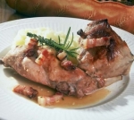 Namesto kuhanja v ponvi, lahko jed preložimo v pekač (ko smo ji dodali marinado in jušno osnovo) in pokrito s folijo do konca spečemo v pečici. Pečemo jo približno 40 minut na 180 °C. Zadnjih 10 minut folijo odstranimo, da se kunec lepo zapeče.