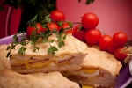 Na testo razporedite salamo. Pokrijte jo z rikoto, nato s pršutom, potem še z mocarelo. Na koncu dodajte trdo kuhana jajca – zdaj bi morali biti že pri vrhu pekača.
