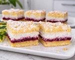 Ko se pecivo ohladi, ga posujte s sladkorjem v prahu in narežite na kocke.