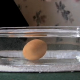 Ko jajce postavite v posodo z vodo, sicer potone na dno sklede, vendar ne s celo površino. En del ostane privzdignjen.