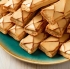 Vsako plast listnatega testa z ostrim nožem ali rezalnikom za pico razrežemo na 16 kosov, pravokotnike v velikosti približno 2,5 x 10 centimetrov. Te pravokotnike nato enakomerno razporedimo na pekače.